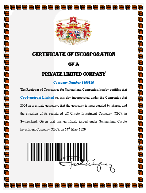 Goodyuptrust Limited is a global investment company, registered at 1865 Ormont-Dessus, Switzerland on the 27th day of May 2020. We provide our clients with a lifetime opportuinity to invest in a profitable and stable investment platform which is capable of helping anyone to attain true financial independence. Goodyuptrust Limited lets you control your finances by providing a fast and instant deposit and withdrawal process.